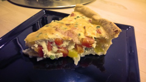 After writing about cookies, chocolate and other sweet delights, I felt like it was time to share something savory and healthy for a change: a vegetable quiche! I made this last night for dinner, and even the Viking liked it – I should mention here that he isn’t the biggest fan of “green stuff”, which can be understood as a synonym for vegetables, although there are some that he likes (e.g. peas, but I mean, how can you not like peas? They rock!). I’ll admit that I did put some pieces of bacon on his half of the quiche, though – a true Viking doesn’t go meat-less!