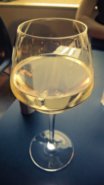Maybe a word on my choice of drinks: I decided to have a glass of white wine with lunch (pictured above), and found it very pleasant. Fruity, but still fresh – nothing too special, but good to go along with a light lunch.