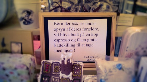 Love this sign: “Kids that aren’t supervised by their parents will be given free espresso and a kitten to take home!”