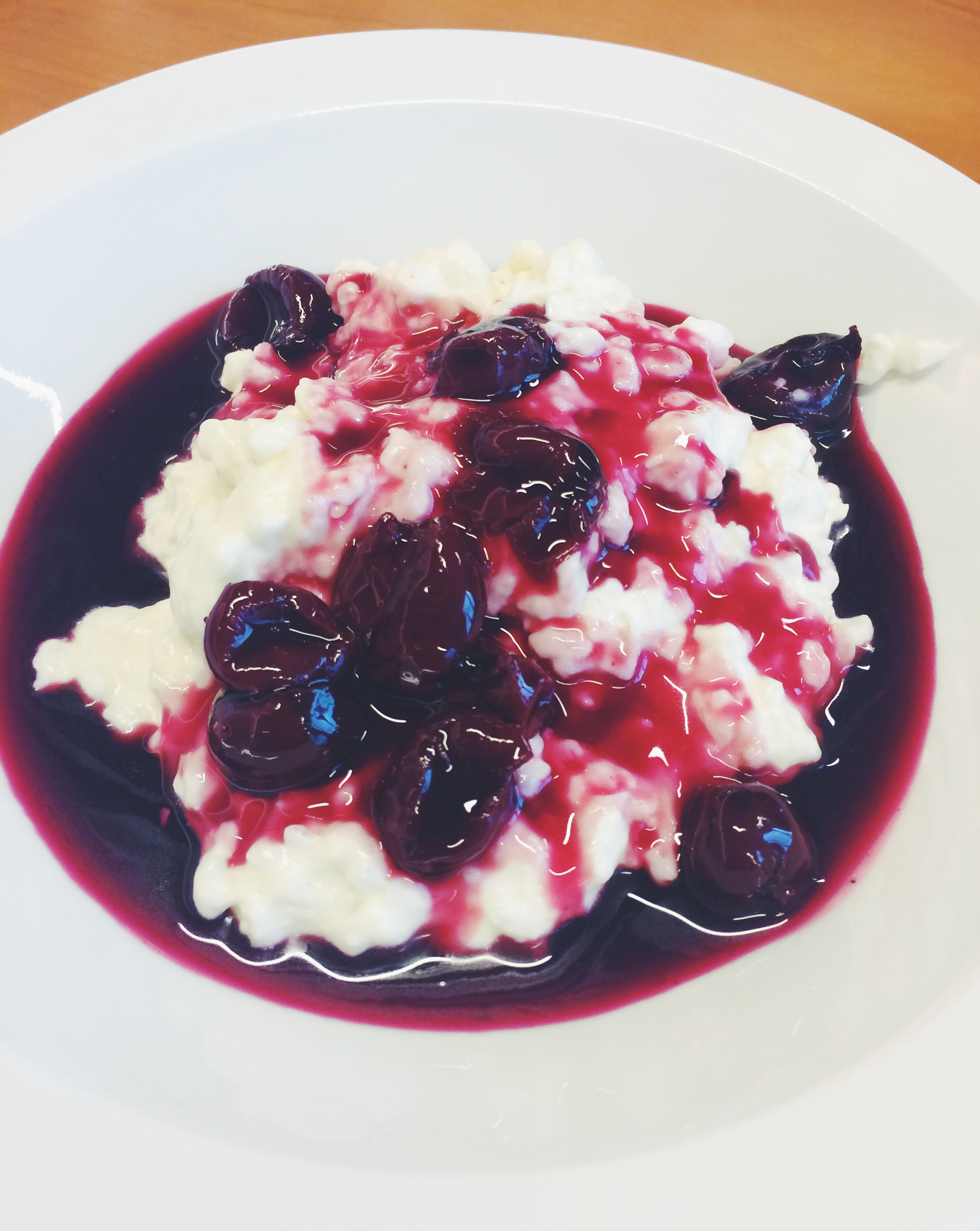 Important note regarding rice pudding in Denmark: there is “risengrød”, the sort of standard rice pudding. This can be eaten all year round, and is served sprinkled with cinnamon and sugar. And then there’s “ris à la mande” (sometimes spelled “risalamande”), which is that same rice pudding, but refined with whipped cream and chopped almonds, and served with cherry sauce. [Side note: don’t make the mistake of suggesting to serve cherry sauce with standard “risengrød”. My boyfriend shot me a stare that said “what is wrong with you?!” when I did, stupid little me.] Ris à la mande is always served from a big bowl, and there’s one whole almond hidden in it. Whoever finds it gets a little present (“mandelgave”, like I did last year). I’m also over the moon by this recipe for a ris à la mande cake!